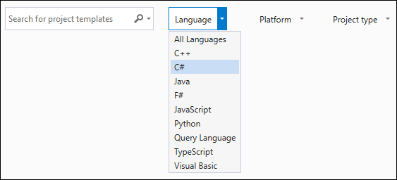 The one selected, Console App, is the one you want. But if it's not selected, click the dropdown box at the top, for Languages. Then choose the C# option: