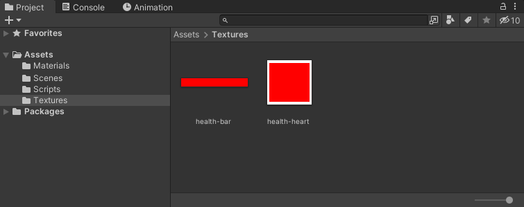 In the Project area of Unity, create a new folder called Textures. Drag and drop the two images above into your new folder. The project area will then look like this: