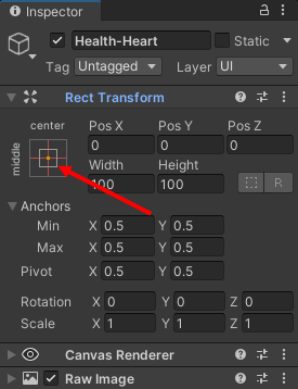 The Raw Image has its own anchors, which are in the middle. We want these, and the image, on the left. So, (tricky part, this), click the anchor box in the top left again: