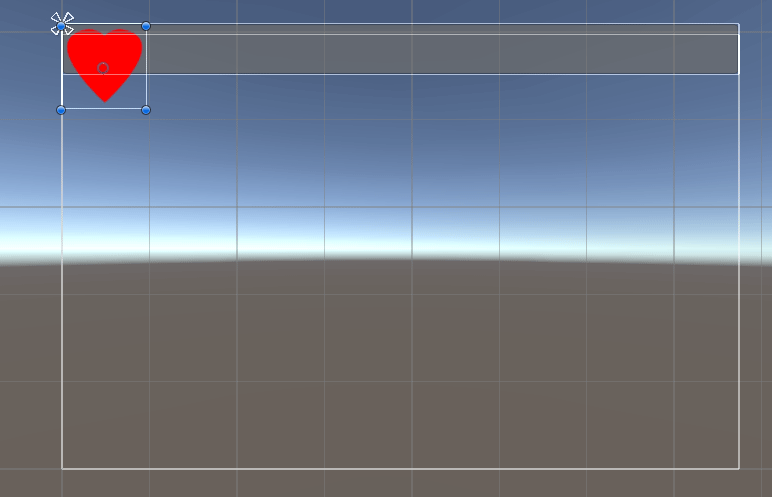 Notice that Health-Bar is on top of Health-Heart. If yours is the other way round, drag Health-Bar to the top. (Left-click on Health-Bar. Keep your left mouse button held down and drag above Health-Heart.) If you don't, the heart will be below of the bar.